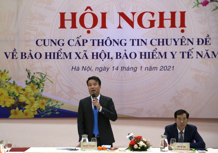 | Tổng Giám đốc BHXH Việt Nam Nguyễn Thế Mạnh chia sẻ tại Hội nghị cung cấp thông tin chuyên đề BHXH, BHYT năm 2021 do BHXH Việt Nam tổ chức ngày 14/1 tại Hà Nội. (Ảnh: ĐT) |