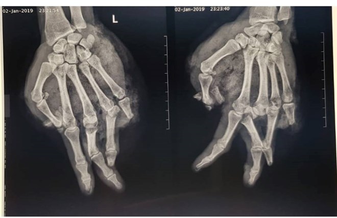 Ảnh chụp phim X-quang bàn tay của bệnh nhân. (Ảnh: BVCC)
