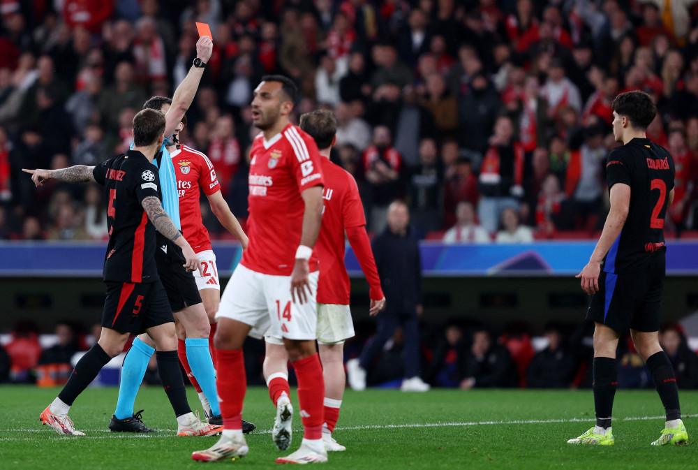 Dễ hiểu khi trọng tài chính Felix Zwayer rút thẻ đỏ ngay lập tức cho Cubarsi. Barca chỉ còn 10 người trên sân.