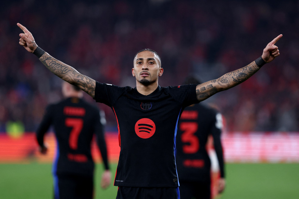 Raphinha ăn mừng bàn thắng (Ảnh: REUTERS)