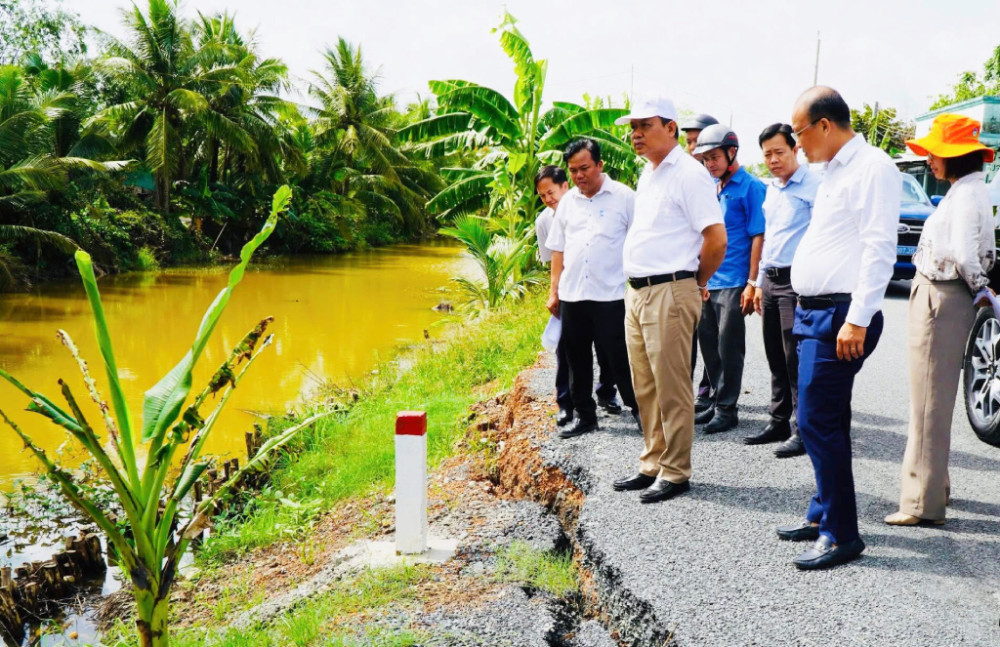 Lãnh đạo huyện Cần Giuộc kiểm tra tuyến đường kênh xáng A bị sạt lở trên địa bàn xã Thuận Thành
