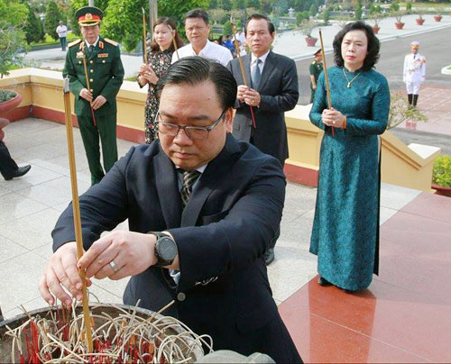 Sau lễ viếng, Bí thư Thành ủy Hà Nội Hoàng Trung Hải và Đoàn công tác đã thắp hương lên từng phần mộ của các vị tiền bối cách mạng và các Anh hùng, liệt sĩ tại Nghĩa trang Mai Dịch./.