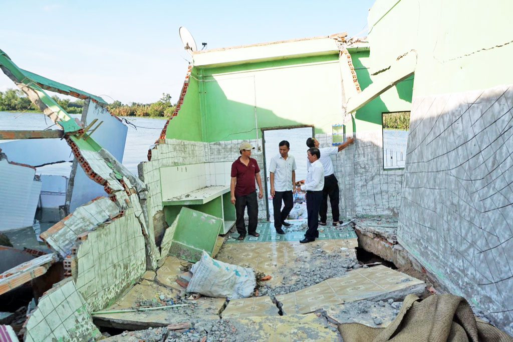 Đoàn thăm các gia đình có nhà bị sạt lở tại xã Lợi Bình Nhơn
