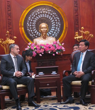 Bí thư Thành ủy Thành phố Hồ Chí Minh Đinh La Thăng tiếp ông Sergey Tumanov, Giám đốc điều hành Công ty Gazprom Internationnal Services (Ảnh:TL)