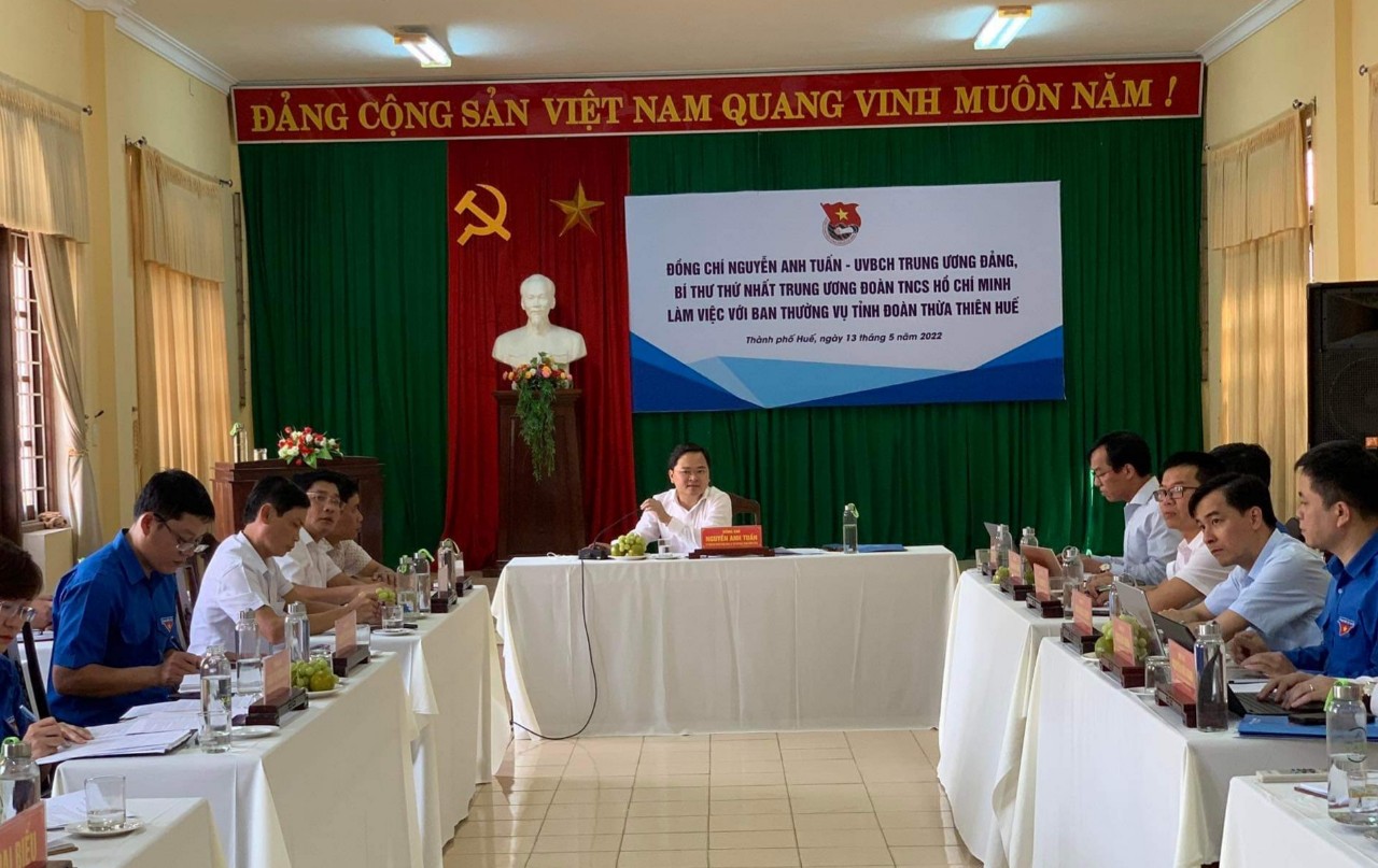 Chiều cùng ngày, đoàn công tác của Bí thư thứ nhất Trung ương Đoàn Nguyễn Anh Tuấn có buổi làm việc với Ban Thường vụ Tỉnh Đoàn TT-Huế về công tác chuẩn bị và tổ chức Đại hội Đoàn các cấp; đánh giá kết quả công tác Đoàn và phong trào thanh thiếu nhi tỉnh Thừa thiên-Huế 04 tháng đầu năm 2022; công tác chuẩn bị triển khai Chiến dịch Thanh niên tình nguyện Hè năm 2022; triển khai thực hiện Chỉ thị 03-CT/TWĐTN-BTC ngày 21/7/2021 của Ban Bí thư T.Ư Đoàn về việc “Tăng cường công tác bồi dưỡng, giới thiệu đoàn viên ưu tú cho Đảng xem xét, kết nạp”.