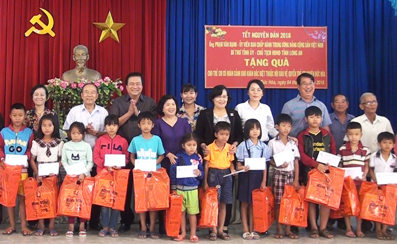 Chiều ngày 04/02, Bí thư Tỉnh ủy, Chủ tịch HĐND tỉnh Long An - Phạm Văn Rạnh, Phó Chủ tịch Hội Bảo vệ quyền trẻ em Việt Nam – Lê Thị Thu trao 100 phần quà cho trẻ em nghèo, trẻ em có hoàn cảnh đặc biệt khó khăn và trẻ em là con gia đình nạn nhân bị nhiễm chất độc da cam Dioxin tại thị trấn Hậu Nghĩa và các xã Hòa Khánh Tây, Hòa Khánh Nam, Tân Phú, Tân Mỹ (huyện Đức Hòa).