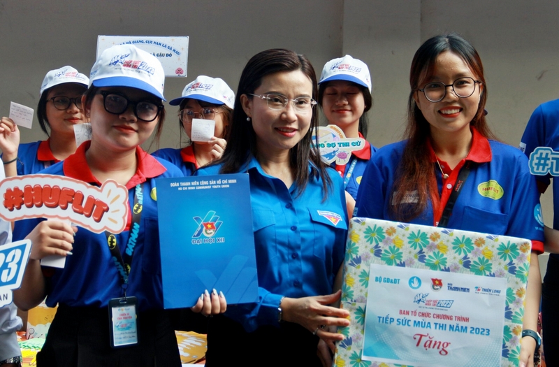 Tại thành phố Hồ Chí Minh, đoàn công tác do Bí thư Trung ương Đoàn, Chủ tịch Hội đồng Đội Trung ương Nguyễn Phạm Duy Trang làm trưởng đoàn đã đến thăm, tặng quà các đội hình “Tiếp sức mùa thi” trong kì thi tốt nghiệp THPT năm 2023 tại điểm thi THPT Ten Lơ Man và trường THPT Lê Quý Đôn.