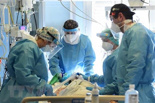 Nhân viên y tế điều trị cho bệnh nhân COVID-19 tại bệnh viện ở Cremona, Italy ngày 11/1/2022. (Ảnh: AFP/TTXVN)