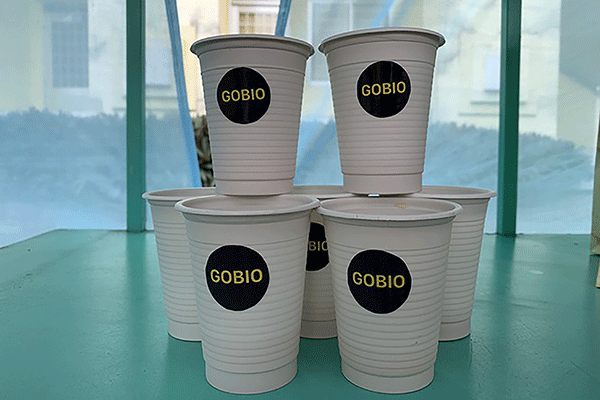 Sản phẩm cốc nước được làm từ vỏ tôm. Ảnh: H.N