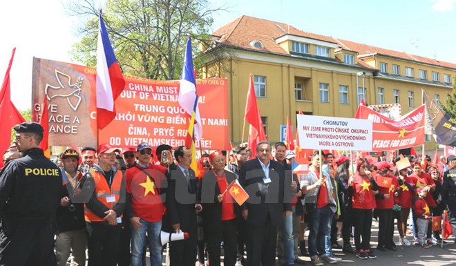 Theo phóng viên TTXVN tại Cộng hòa Séc, chiều ngày 29/4, hơn 400 người là đại diện cho cộng đồng Việt Nam tại Cộng hòa Séc gồm 65.000 người, đã tiến hành cuộc biểu tình trước Đại sứ quán Trung Quốc ở Prague để trao Kháng thư phản đối Trung Quốc đẩy mạnh quân sự hóa ở Biển Đông.