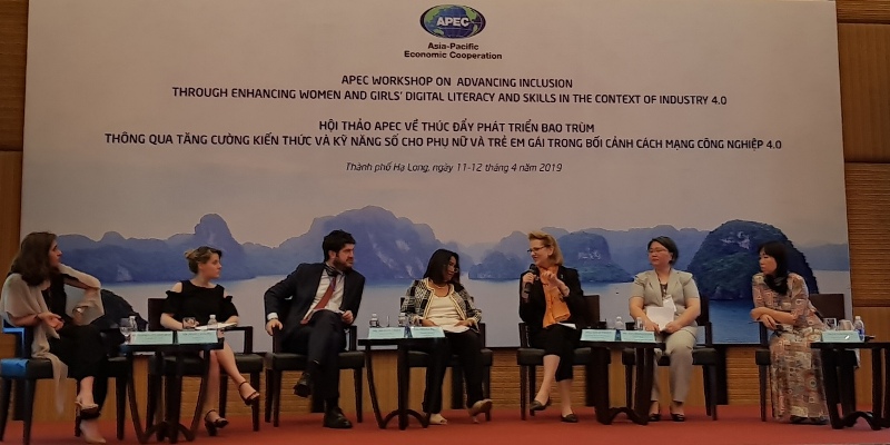 Ngày 12/4/2019, Bộ Ngoại giao đã phối hợp với Bộ Lao động – Thương binh và Xã hội, UBND tỉnh Quảng Ninh và Ban Thư ký APEC tổ chức “Hội thảo APEC về thúc đẩy phát triển bao trùm thông qua tăng cường kiến thức và kỹ năng số cho phụ nữ và trẻ em gái trong bối cảnh công nghiệp 4.0” tại thành phố Hạ Long, tỉnh Quảng Ninh. Đây là sáng kiến quan trọng và thiết thực của Việt Nam nhằm tiếp tục thúc đẩy triển khai kết quả của Năm APEC 2017 về phát triển bao trùm và phát triển nguồn nhân lực trong kỷ nguyên số. Sáng kiến được các thành viên APEC đánh giá cao, trong đó Trung Quốc, Hoa Kỳ, Nhật Bản, Nga, Chi-lê, Niu Di-lân, Đài Bắc-Trung Hoa đã đồng bảo trợ.
