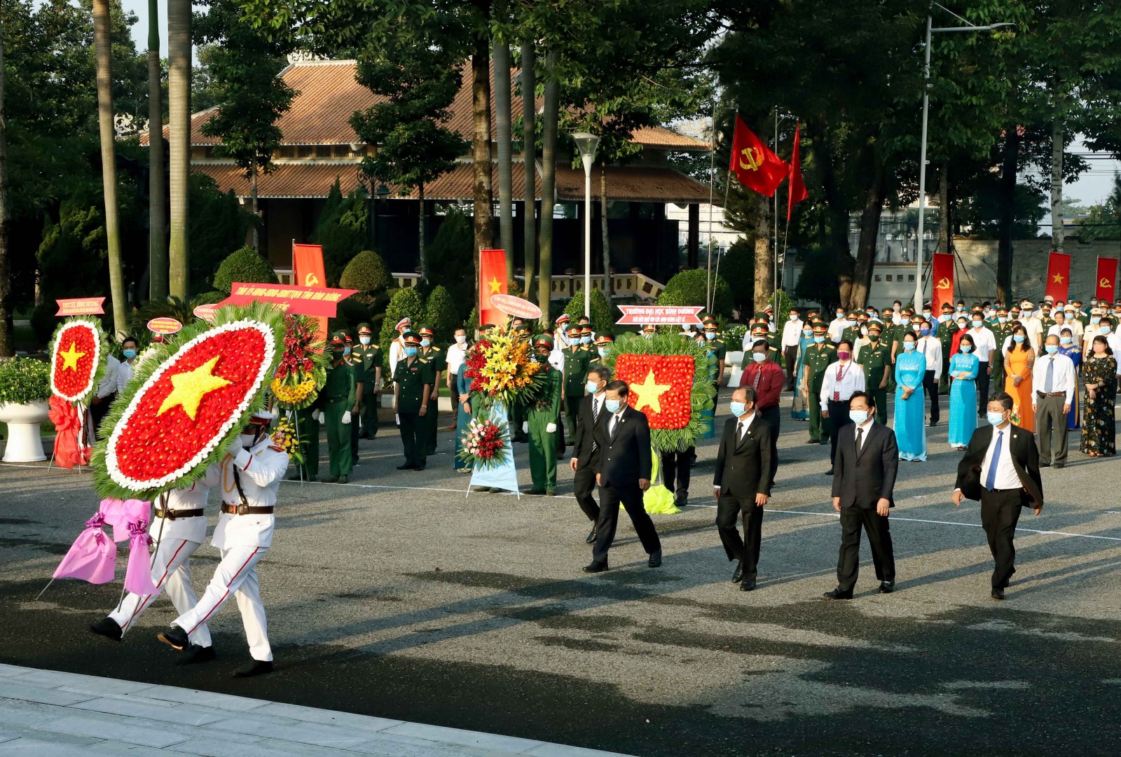 | Lãnh đạo tỉnh đến viếng và dâng hoa tại nghĩa trang liệt sỹ tỉnh Bình Dương. (Ảnh: Quốc Chiến) |