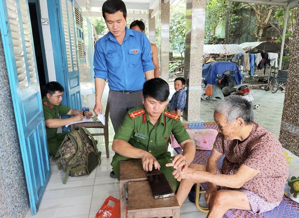 | Chi đoàn Phòng Cảnh sát Quản lý hành chính về trật tự xã hội Công an tỉnh thực hiện thủ tục cấp chứng minh nhân dân tại gia đình cho người cao tuổi. (Ảnh: Như Ý) |