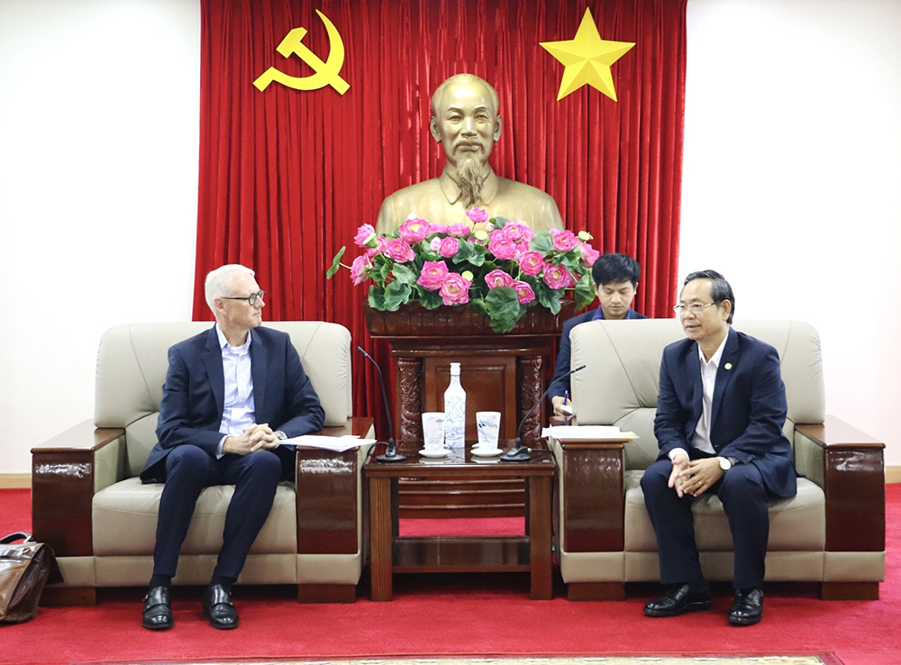 | Phó Chủ tịch UBND tỉnh Nguyễn Văn Dành tiếp ông Rene Piil Perdesen. (Ảnh: Đoan Trang) |