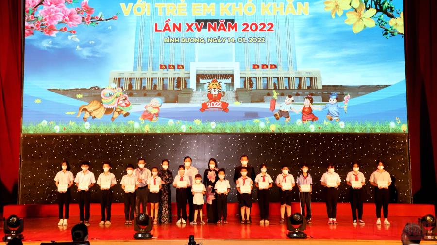 Chiều tối 14/1, Hội đồng bảo trợ Quỹ Bảo trợ trẻ em tỉnh, Sở Lao động Thương binh và Xã hội tỉnh Bình Dương đã tổ chức chương trình "Xuân với trẻ em khó khăn” lần thứ XV năm 2022.