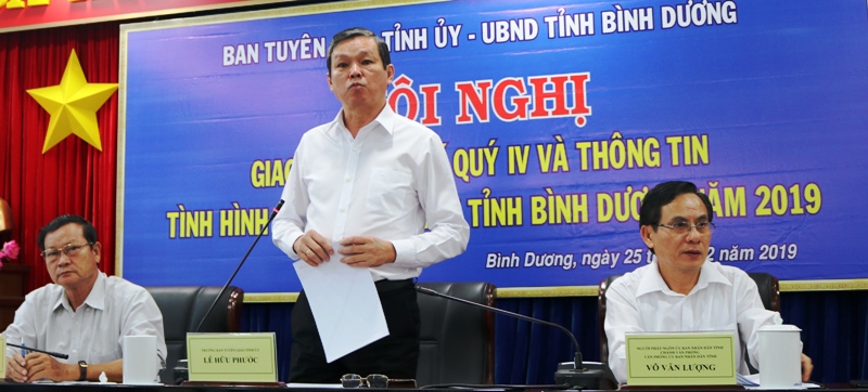 Phát biểu tại hội nghị, Trưởng Ban Tuyên giáo Tỉnh ủy Bình Dương Lê Hữu Phước cảm ơn sự đóng góp của các cơ quan báo chí trong và ngoài tỉnh đã gắn bó đồng hành hỗ trợ thông tin tuyên truyền về các hoạt động của tỉnh trong thời gian qua. Các phóng viên cơ quan thông tấn, báo chí trong và ngoài tỉnh đã năng động, tích cực phản ánh tình hình phát triển kinh tế- xã hội, công tác xây dựng Đảng, xây dựng nông thôn mới... Đồng thời quan tâm phản ánh những tồn tại của một số sở, ngành trong tỉnh thời gian qua. Đây là cơ sở để lãnh đạo tỉnh nắm bắt kịp thời các vấn đề, từ đó có hướng xử lý kịp thời, bảo vệ quyền, lợi ích chính đáng của nhân dân.