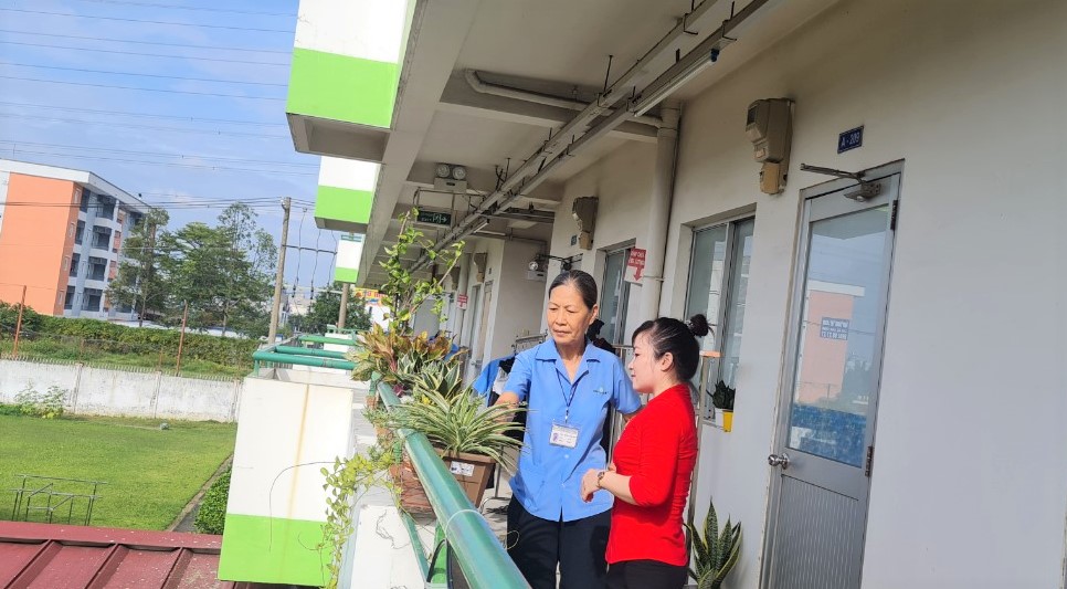 Làm việc tại Công ty TNHH Showa Gloves được 10 năm, chị Nguyễn Thị Kim Sương, quê ở (Quảng Trị) chia sẻ: với thu nhập 10 triệu, chị được Công ty hỗ trợ tạo điều kiện ở trong ký túc xá, tiền lương hằng tháng chị gửi về cho bố mẹ ở quê. Cơ sở vật chất khang trang, không gian xung quanh thoáng, rộng mọi người ở đây cũng rất thân thiện nên chị Sương cảm thấy ở trong ký túc xã rất tốt.
