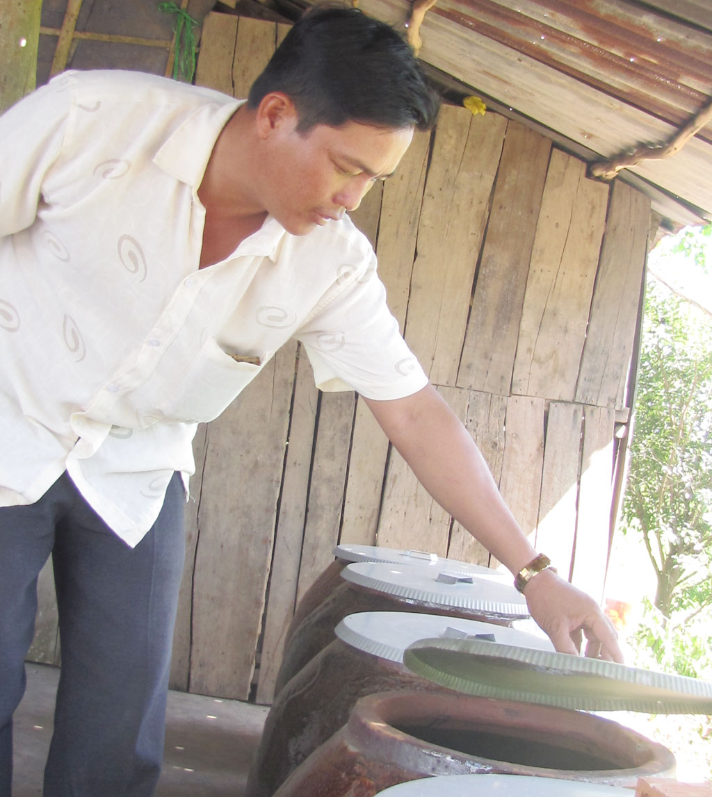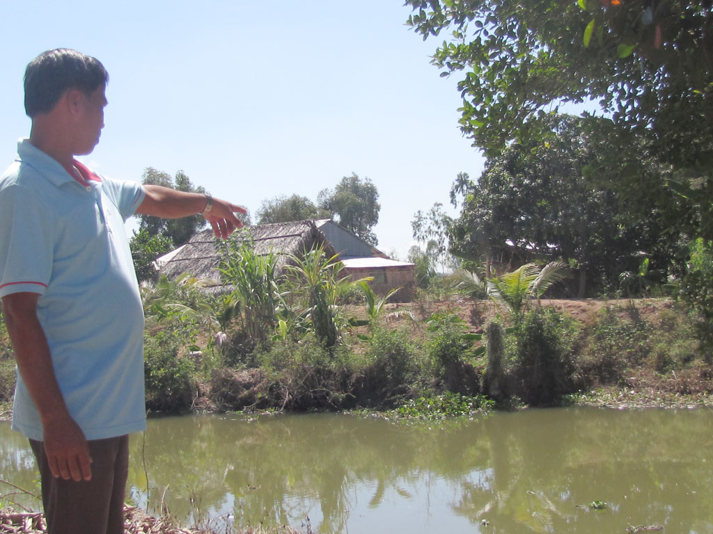 Anh Đặng Văn Trầm vẫn phải sử dụng nước lắng từ kênh Bến Buông