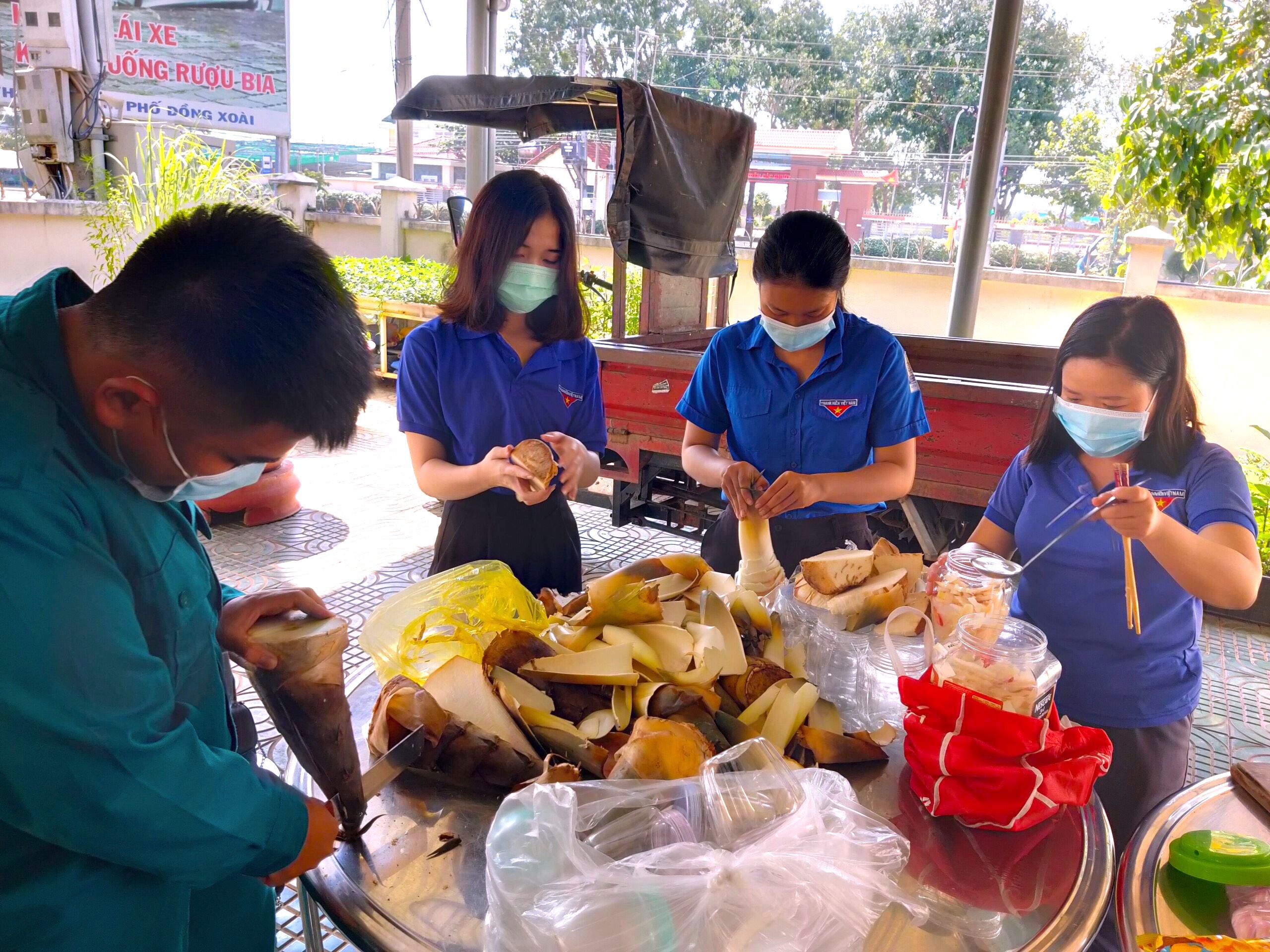 | Những ngày qua, tuổi trẻ Bình Phước đã có những hoạt động cụ thể hỗ trợ người dân khu vực cách ly và các chốt thực hiện nhiệm vụ phòng, chống dịch COVID-19 (Ảnh: Thắng Trân) |