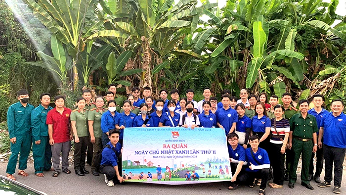 (CT) - Quận đoàn Bình Thủy phát động ra quân đồng loạt tại 8 phường trên địa bàn thực hiện “Ngày Chủ nhật xanh” lần thứ II, năm 2024 vào ngày 26-5. Chương trình có chuỗi hoạt động: trồng mới 200 cây bần, cây hoàng yến, phát quang cỏ, bụi rậm, cắt tỉa nhánh cây mất an toàn, dọn dẹp vệ sinh, thu gom phân loại rác thải, tháo dỡ các bảng quảng cáo sai phép, tuyên truyền giữ gìn khu dân cư, tuyến đường, tuyến hẻm, tuyến phố, đơn vị sáng - xanh - sạch - đẹp - văn minh - an toàn… Hoạt động thu hút hơn 320 lượt đoàn viên thanh niên, học sinh và chiến sĩ tham gia.