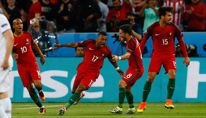 Nani ăn mừng bàn thắng mở tỉ số vào lưới Iceland - Ảnh: REUTERS