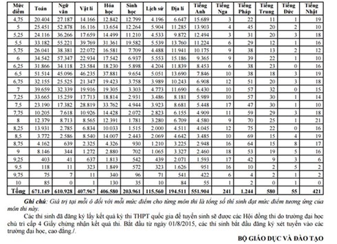 Bộ GD-ĐT công bố chi tiết số liệu điểm thi và thí sinh từng môn