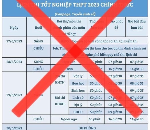 Cụ thể, trên Fanpage của Bộ GD&ĐT ghi rõ: Hiện nay, vẫn còn có tình trạng cá nhân/tổ chức mạo danh Bộ GD&ĐT công bố thông tin không chính thống gây nhiễu loạn thông tin. Cụ thể, Bộ GD&ĐT cho biết tình trạng mạo danh Bộ công bố lịch thi tốt nghiệp THPT 2023 từ địa chỉ https://www.facebook.com/tuyensinhso. Hiện Bộ GD&ĐT mới công bố ngày thi, chưa công bố lịch thi chi tiết từng ngày.