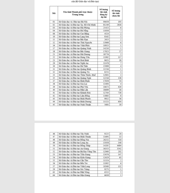 Số lượng thí sinh không tham dự kỳ thi tốt nghiệp THPT năm 2021 đợt 2 theo địa phương