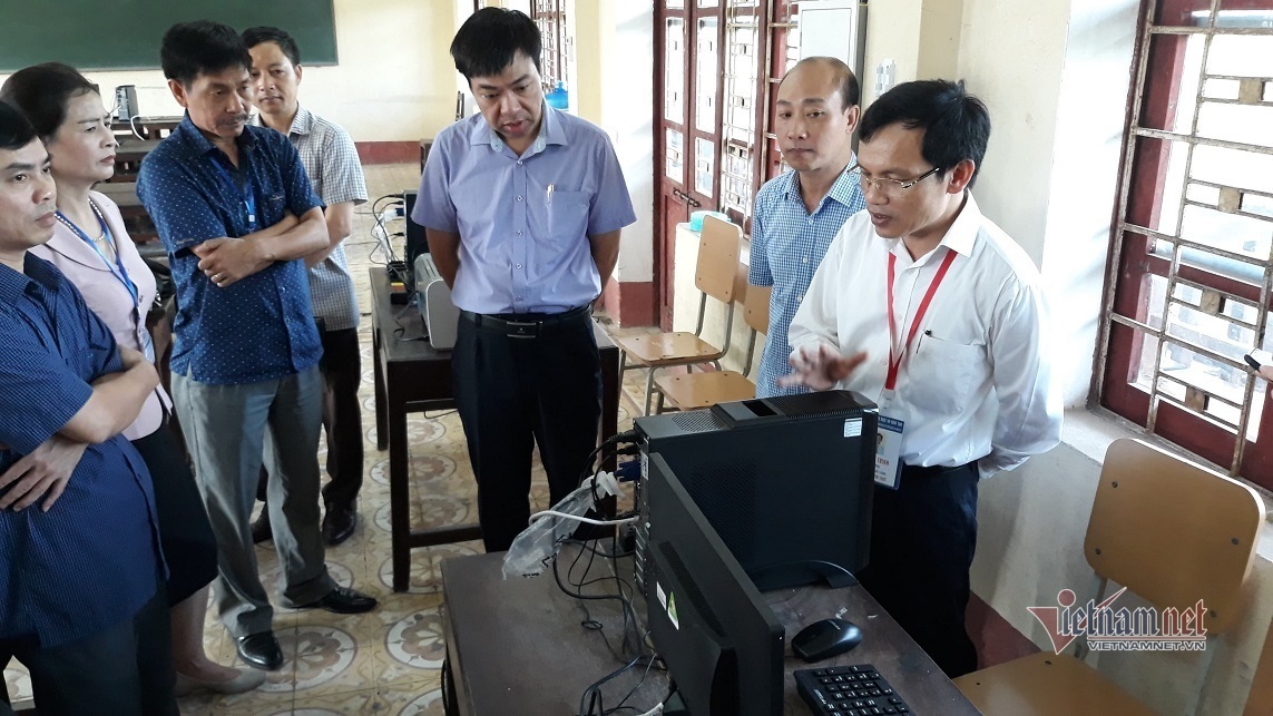 Đại diện Bộ GD-ĐT kiểm tra máy móc phục vụ chấm thi THPT quốc gia năm 2019. Ảnh tư liệu: Thanh Hùng.