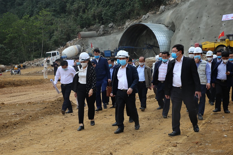 | Bộ trưởng Bộ GTVT Nguyễn Văn Thể thúc tiến độ công trường thi công Mai Sơn (Ninh Bình) - QL45. |