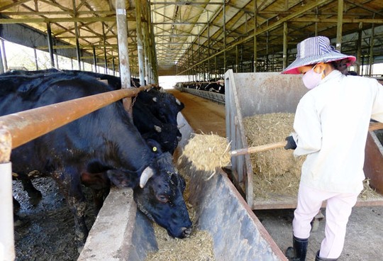 Bò Kobe được nuôi với kỹ thuật hết sức đặc biệt, với sự theo dõi của chuyên gia Nhật. Ảnh: Đình Thi