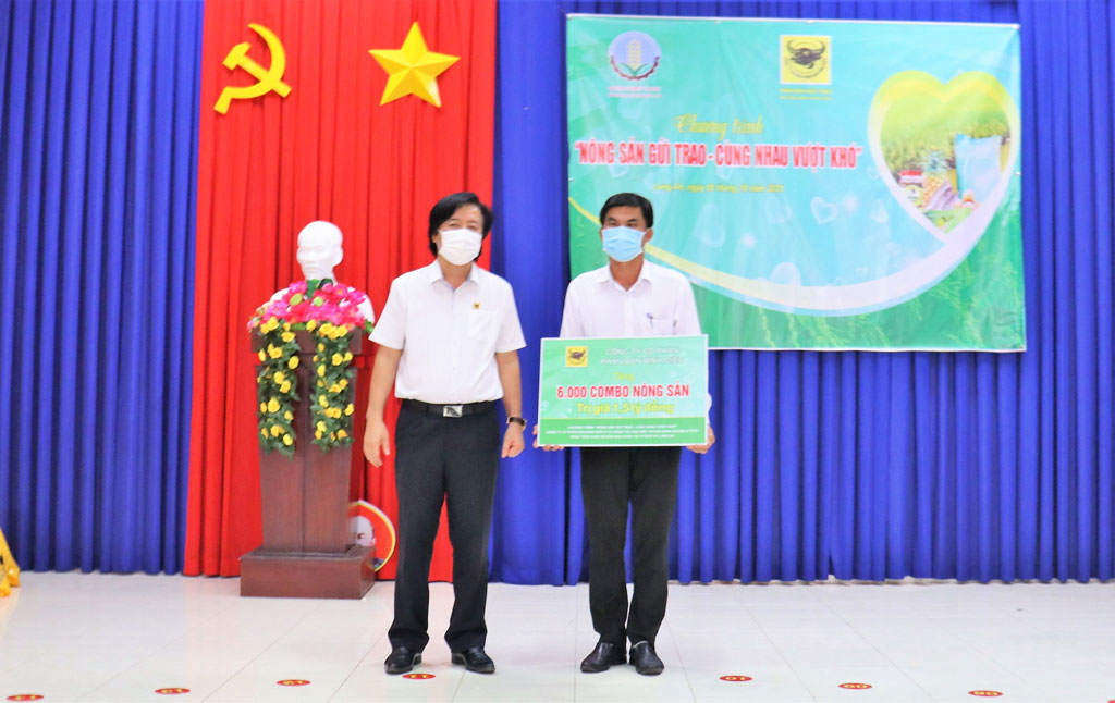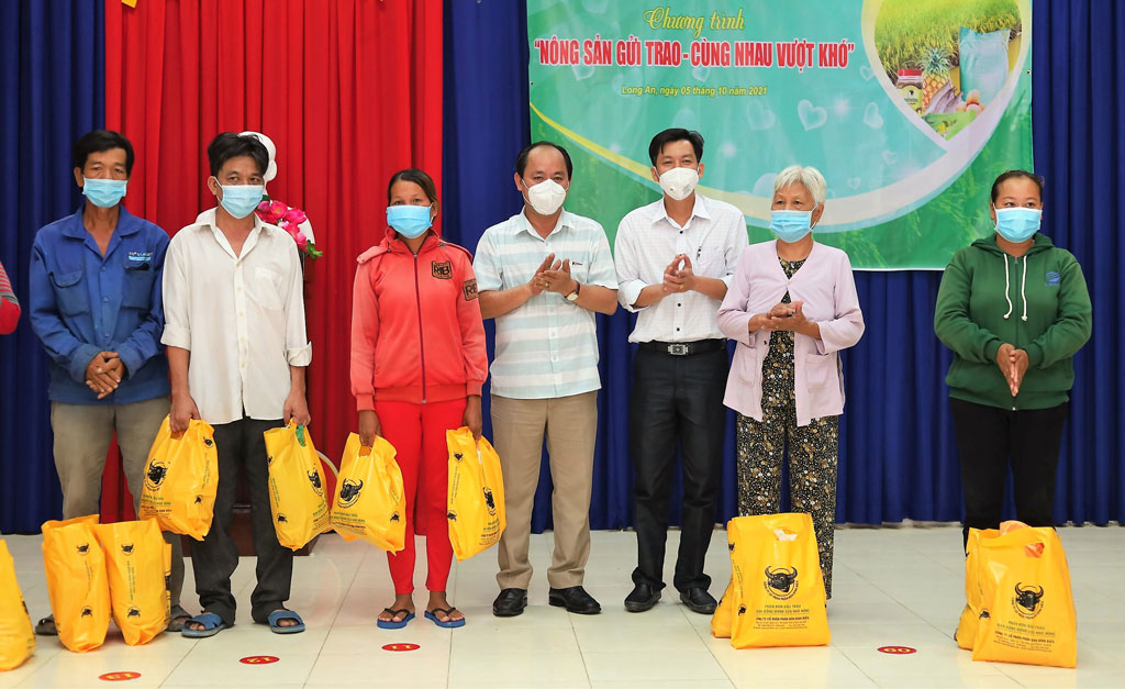 Chương trình “Nông sản gửi trao - cùng nhau vượt khó” trao 2.305 combo nông sản cho hộ nghèo, hộ cận nghèo và công nhân lao động trong các khu nhà trọ trên địa bàn xã Long Định. Mỗi combo gồm 5 kg gạo, rau, củ, khô, mắm, trứng gà,…
