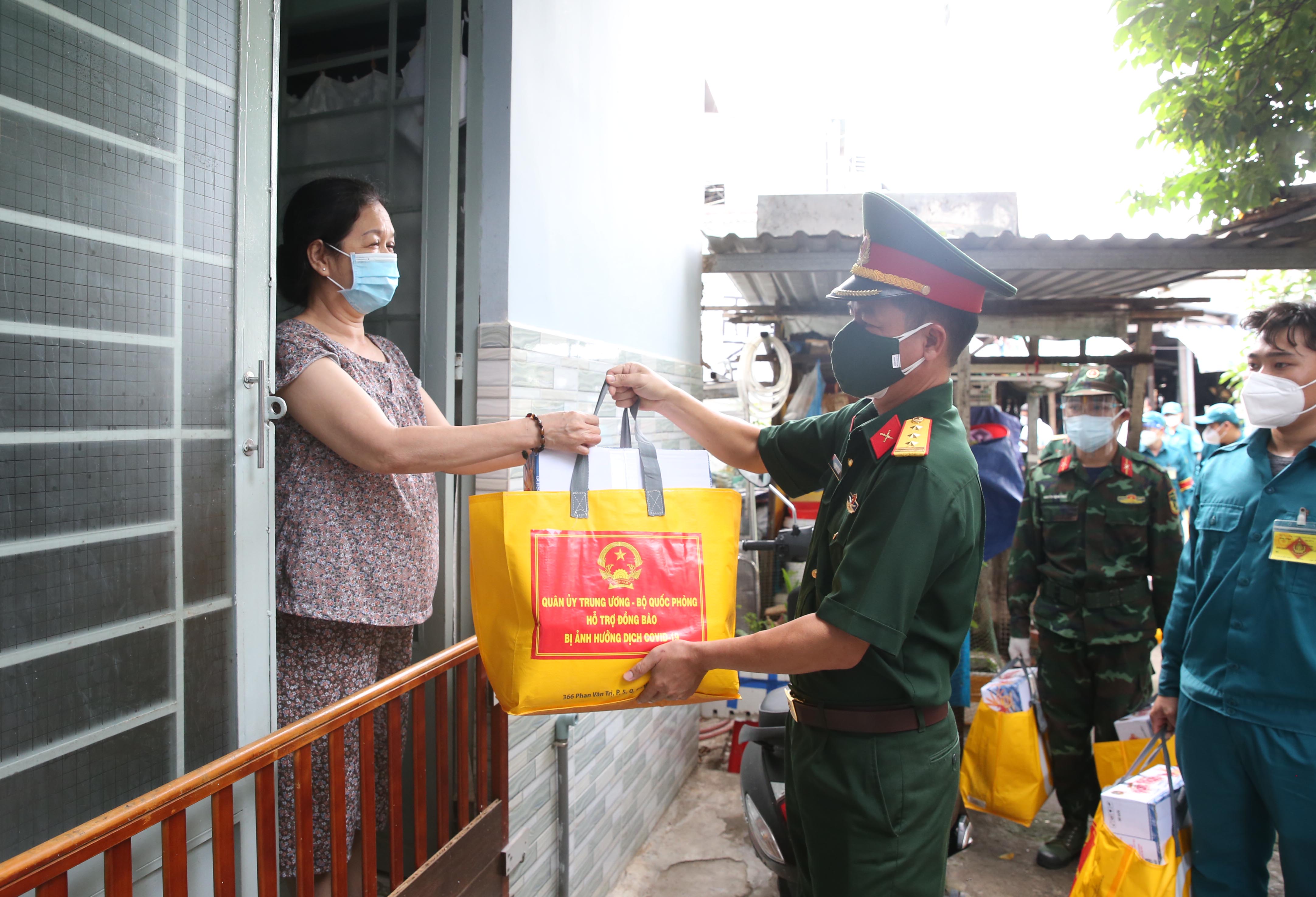 | Các phần quà của Bộ Quốc phòng nhanh chóng được hỗ trợ người dân Quận 8 có hoàn cảnh khó khăn |