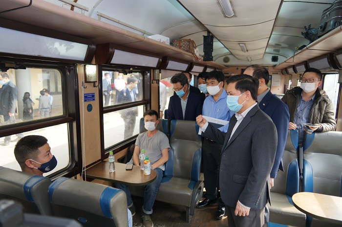| Bộ trưởng Bộ GTVT, Phó Chủ tịch Thường trực Ủy ban ATGT Quốc gia Nguyễn Văn Thể kiểm tra công tác đảm bảo ATGT và phòng chống dịch COVID-19 trong dịp Tết Nguyên đán Tân Sửu 2021, tại ga Hà Nội. |