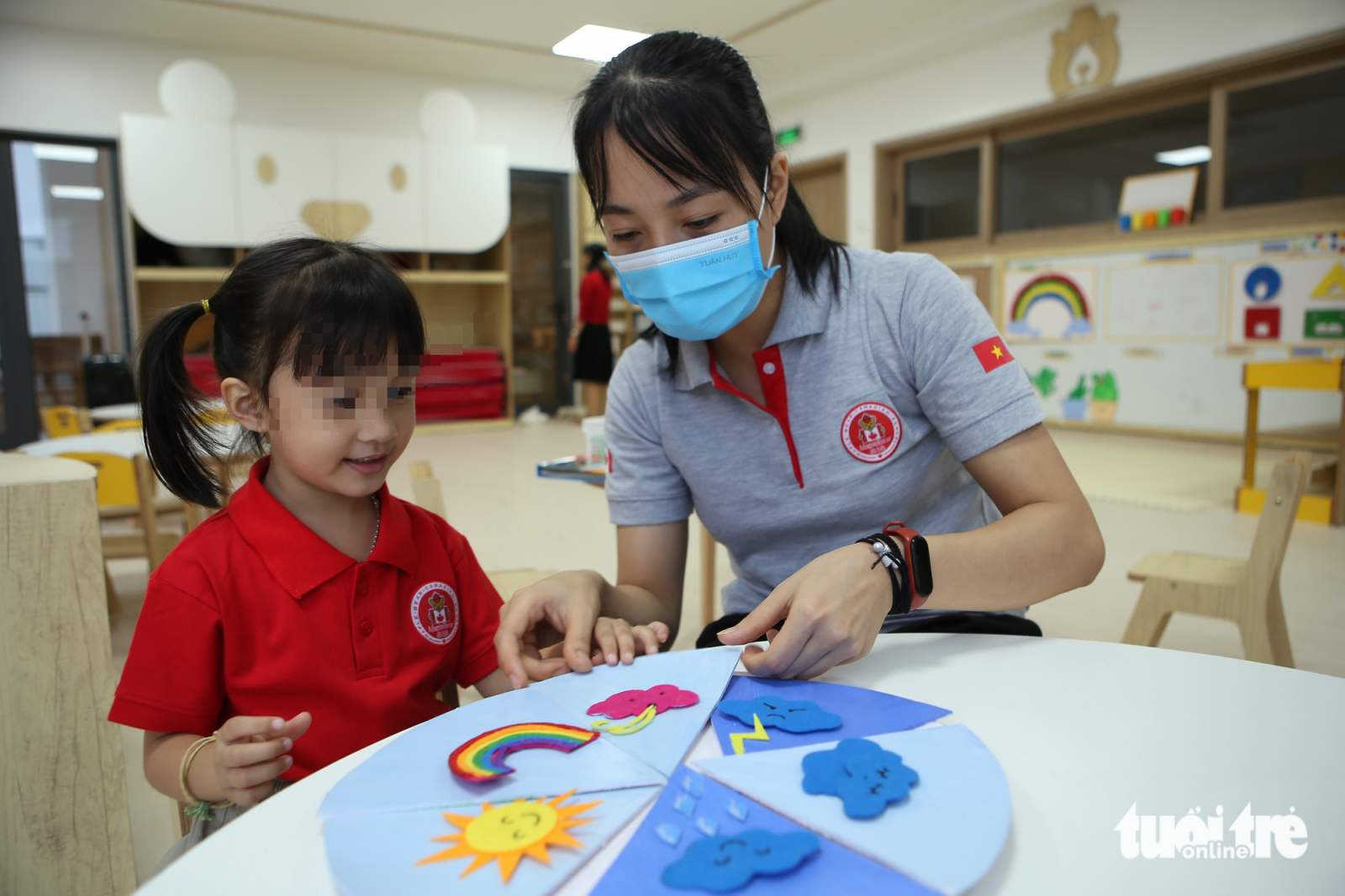Giáo viên mầm non là nghề đặc thù khi không chỉ dạy học mà còn chăm sóc trẻ, tạo đồ chơi cho các bé - Ảnh: HÀ QUÂN