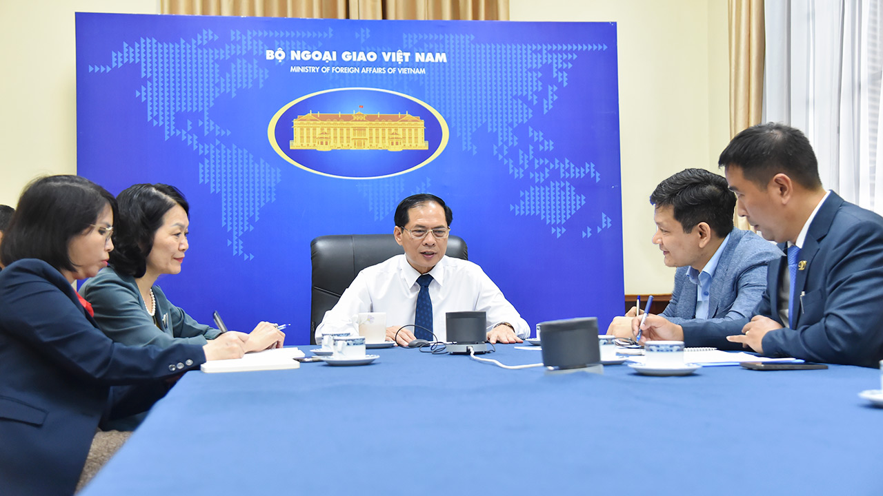 | Bộ trưởng Ngoại giao Bùi Thanh Sơn tại cuộc điện đàm |