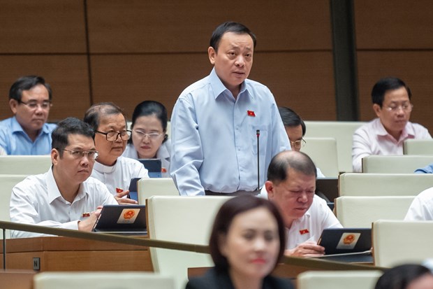 Đại biểu Lê Văn Khảm chất vấn về vấn đề dạy bơi cho trẻ em. (Ảnh: CTV/Vietnam+)