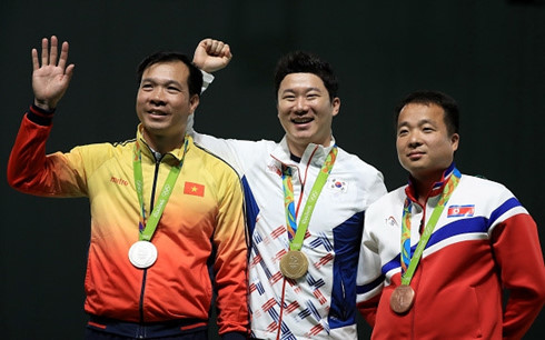 Hoàng Xuân Vinh giành HCB tại nội dung 50m súng ngắn bắn chậm. (Ảnh: Getty)