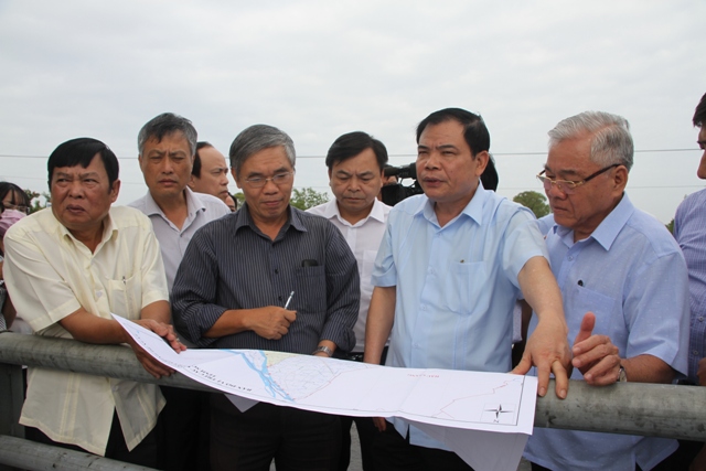 | Bộ trưởng Nguyễn Xuân Cường khảo sát thực tế, kiểm tra một số công trình thủy lợi ứng phó hạn, mặn . |