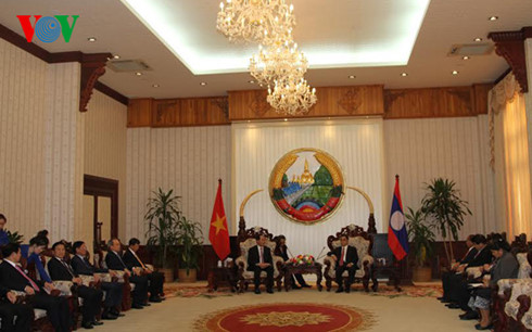 Bộ trưởng Trần Đại Quang chào xã giao Tổng Bí thư, Thủ tướng Lào