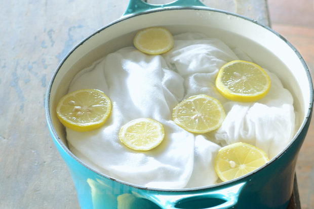 Ngâm với nước nóng, thêm một vài lát chanh có thể giúp quần áo khử được mùi hôi trong những ngày mưa ẩm. (Ảnh minh họa)