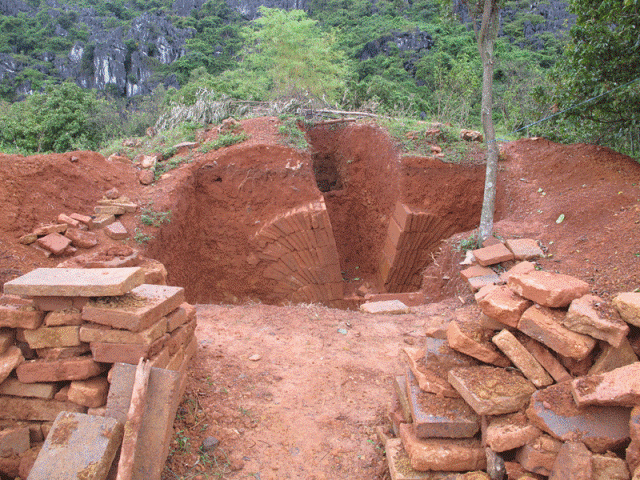 | Mộ gạch cổ được khai quật tại thôn Đức Sơn, xã Yên Đức vào năm 2011, có niên đại vào khoảng thế kỷ I đến III sau Công nguyên. (Ảnh: Báo Quảng Ninh ) |