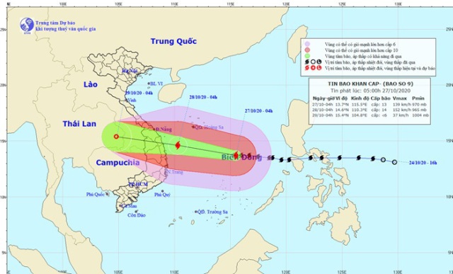 Theo Công điện số 1470/CĐ-TTg ngày 26/10/2020 của Thủ tướng, bão MOLAVE đang hoạt động trên khu vực miền Trung của Philippin; sáng ngày 26 tháng 10 bão vào Biển Đông và trở thành cơn bão số 9. Theo dự báo của Trung tâm Dự báo Khí tượng thủy văn quốc gia, đây là cơn bão có cường độ rất mạnh, phạm vi ảnh hưởng rất rộng, sức gió mạnh nhất vùng gần tâm bão ở trên biển có thể đạt tới cấp 12, 13, giật cấp 15, sóng biển cao từ 8m đến 10m; sau khi vào Biển Đông, bão sẽ di chuyển nhanh về phía vùng biển và đất liền nước ta. Đêm ngày 27 tháng 10, bão ảnh hưởng trực tiếp đến ven biển và đất liền các tỉnh khu vực Trung và Nam Trung Bộ, hoàn lưu bão gây mưa lớn trên diện rộng.