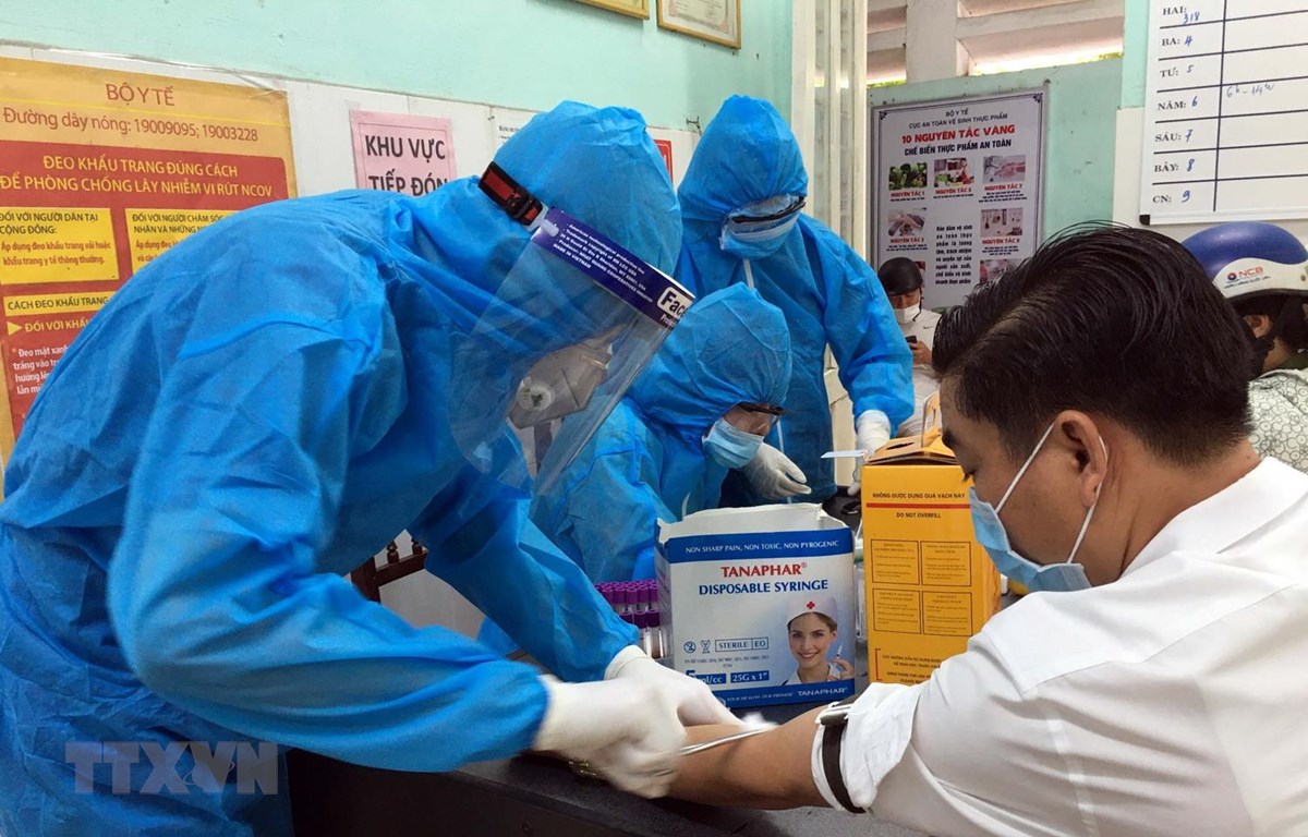 Lấy mẫu xét nghiệm nhanh SARS-CoV-2. (Ảnh: Đỗ Trưởng/TTXVN)