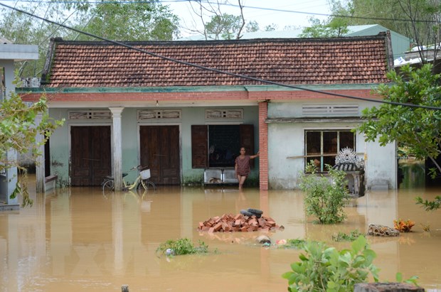 Nhà dân ngập sâu trong nước do mưa lũ. (Ảnh: Quốc Dũng/TTXVN)