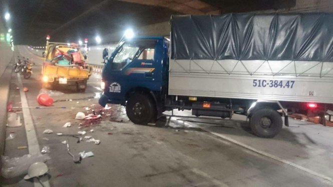 Trước đó, tối 19-4, một nhóm nhân viên công ích đang lau chùi, bảo trì vách hầm Thủ Thiêm thì bất ngờ bị một chiếc xe tải nhẹ tông từ phía sau khiến 1 người chết, 4 người bị thương nặng.