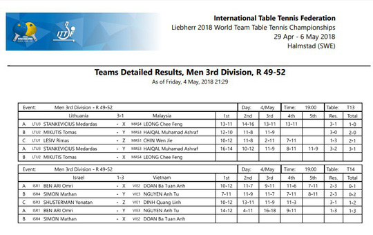 Tay vợt Đoàn Bá Tuấn Anh có trận thắng thứ nhì tại giải khi vượt qua Omri Ben Ari sau 5 ván đấu căng thẳng. Khởi đầu thuận lợi này giúp tuyển Việt Nam thêm tự tin ở trận bán kết nhiều ý nghĩa với Israel. Dù Đinh Quang Linh không thể làm nên chuyện trước Yonatan Shusterman nhưng cây vợt chủ lực Nguyễn Anh Tú đã giành lại ưu thế khi lần lượt đánh bại Mathan Simon và Omri Ben Ari, giúp tuyển Việt Nam giành thắng lợi chung cuộc 3-1.