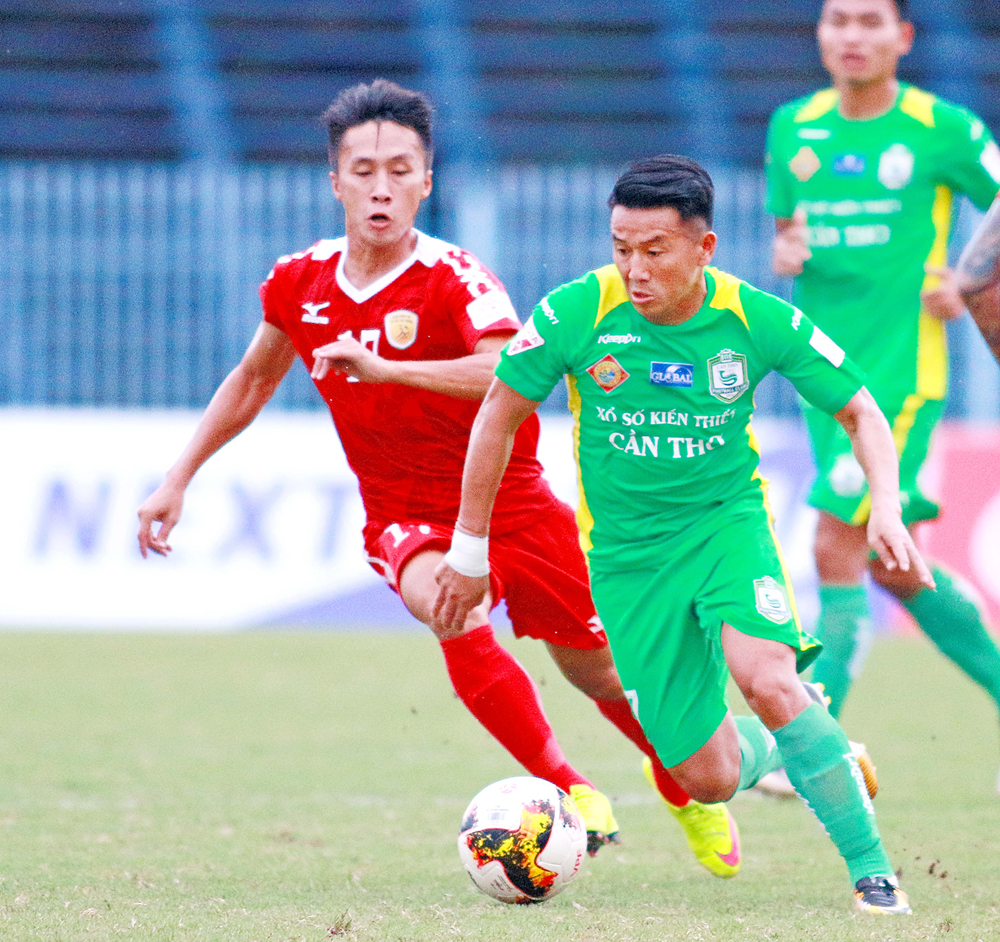 Quang Tình (phải) là ngòi nổ của XSKT Cần Thơ trong trận gặp TP Hồ Chí Minh vòng 18, tiếp tục được kỳ vọng trong trận đấu chiều nay. Ảnh: DƯƠNG THU