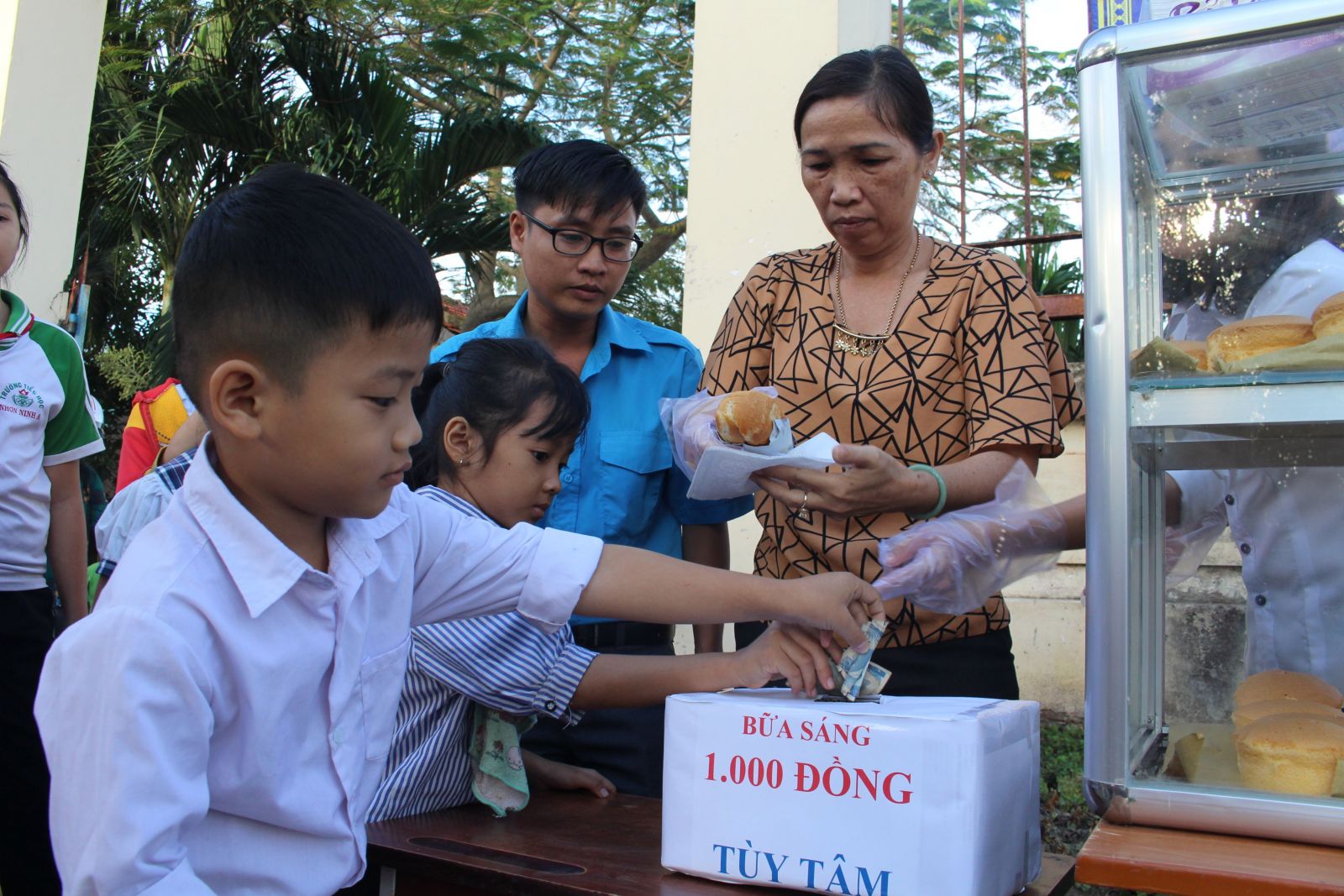 Chương trình Bữa sáng 1.000 đồng do Đoàn Thanh niên phối hợp UBMTTQ và Hội Liên hiệp Phụ nữ xã Nhơn Ninh, huyện Tân Thạnh thực hiện. Từ đầu tháng 10/2020 đến nay, chương trình trao hơn 300 phần ăn sáng (bánh mì thịt và bánh bông lan) cho học sinh mầm non, tiểu học có hoàn cảnh khó khăn với giá 1.000 đồng/phần hoặc tùy tâm.