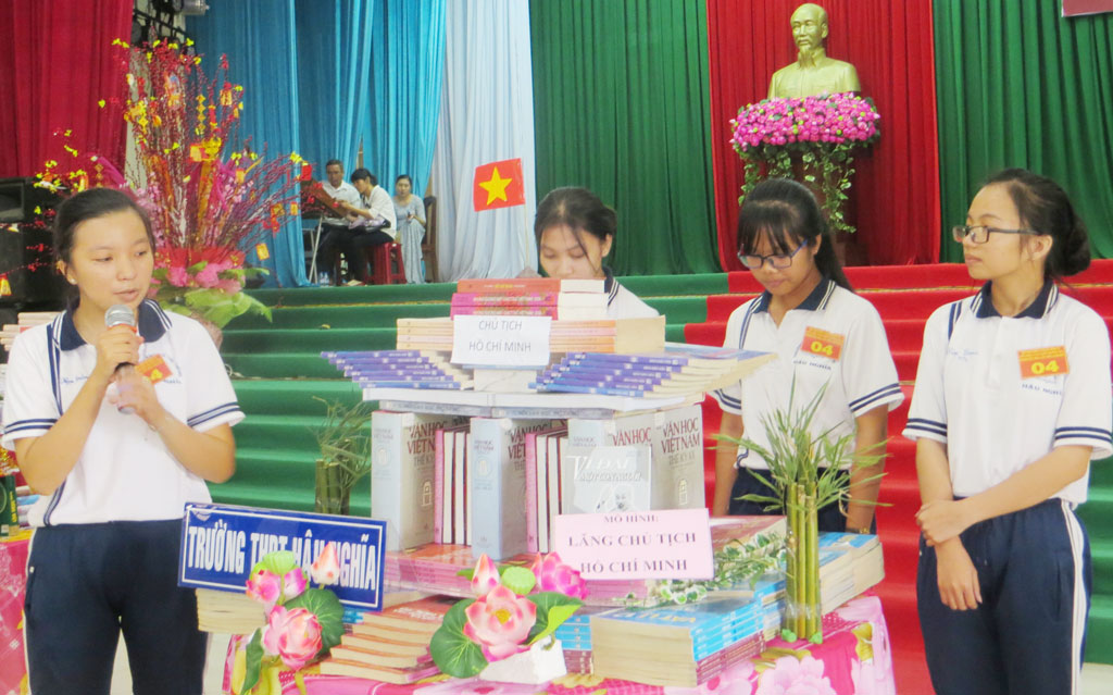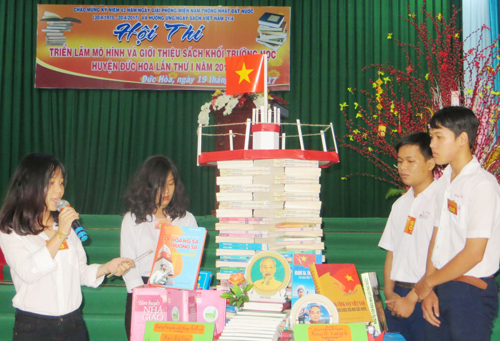 Với mô hình sách “Hoàng Sa, Trường Sa trong vòng tay Tổ quốc”, Trần Thị Ngọc Yến, Trường THCS Đức Hòa Thượng muốn gửi đến độc giả những kiến thức về biển, đảo quê hương. Còn với Trường THPT Hậu Nghĩa, khi xếp những quyển sách theo mô hình “Lăng Chủ tịch Hồ Chí Minh” với chủ đề “Tiếp bước” theo tầng bậc, học sinh muốn khẳng định, sách lưu giữ những bài học trân quý, những kiến thức bổ ích và mang đến nguồn tri thức bất tận cho nhân loại.